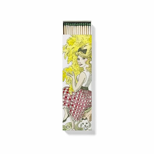 At cire trudon, matches are an essential part of the ritual. In one crack, it ignites the wick, surprises the shadow and gives life to light. Delicately perfumed, it signs the prologue for some of the stories behind the candles. Elegant, long and delicate, asleep in their illustrated boxes, they patiently wait for their destiny. If the box is left slightly open, they will slightly scent, in their sleep, a drawer, a cupboard or a study. Head notes, bergamot peel. Heart notes, mimosa. Base notes iris.