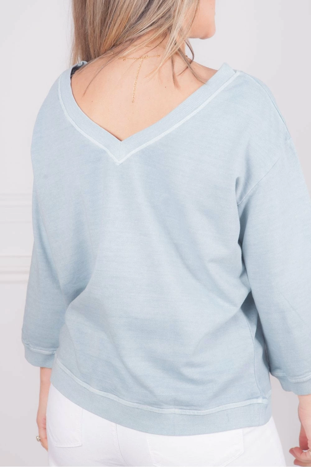 Sweatshirt Bluet Scoop neckline V-neck at the back 3/4 sleeves Washed finish