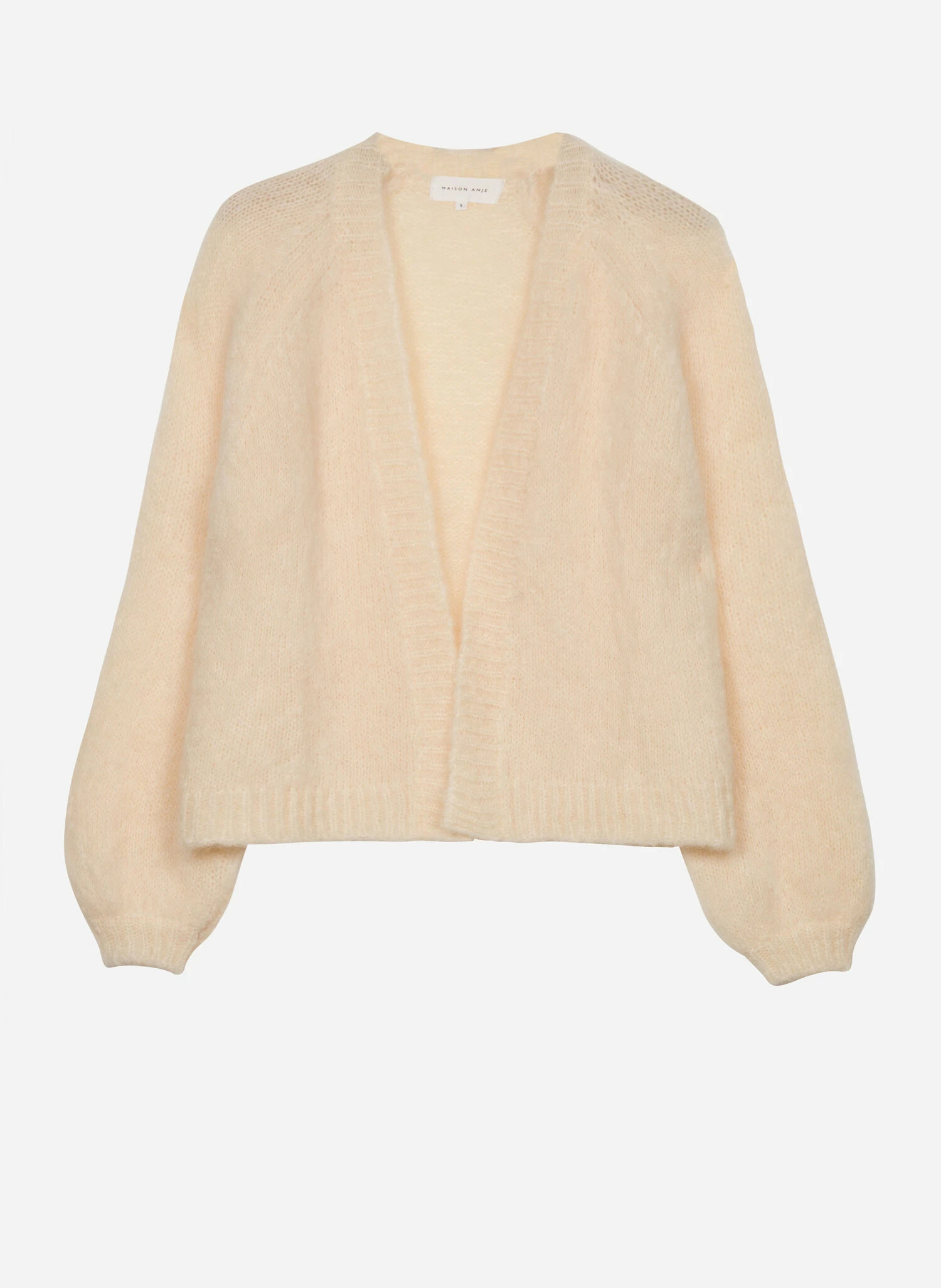 The Maison Anje Lejackey cardigan in ecru is a mohair mix cardigan with an open front and ribbed trim detailing. The cardigan has balloon sleeves and is ideal for throwing on with jeans over a t-shirt or for layering over dresses.