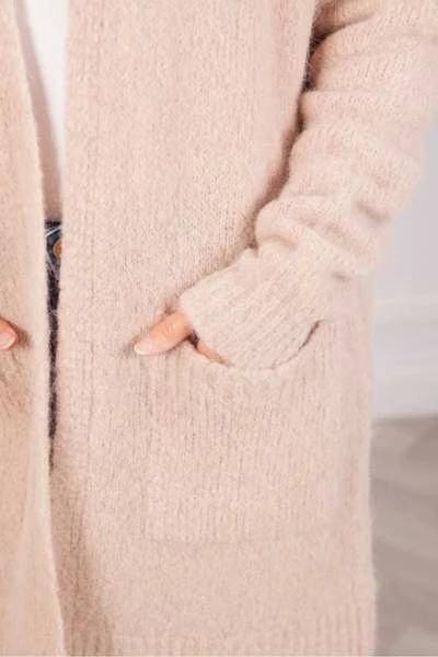 Maison Anje Levaugirard Cardigan – Latte Levaugirard in Latte, featuring two front pockets, ribbed cuffs and hem 42% Superfine Alpaca 40% Merino Wool 16% Polyamide 2% Elastane