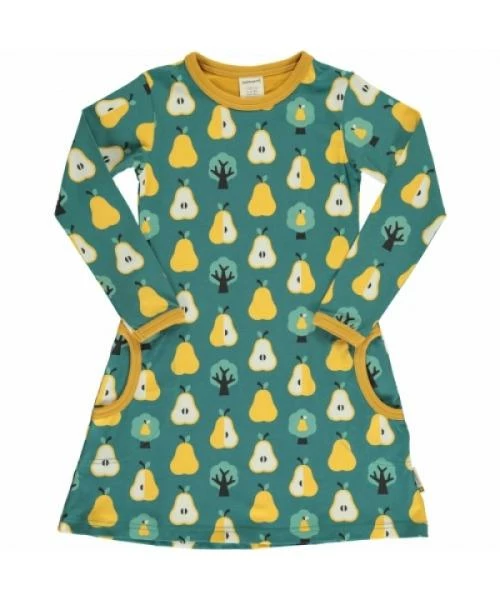 Hooray for this fab new dress from Maxomorra! Featuring an all over Golden Pear print (our favourite from drop B this season!), this dress has coordinating mustard trim around the cuffs, neck and pockets. Pair it with a jacket, tights and boots for a cosy autumn look. Designed in Sweden and made with GOTS Certified organic cotton, Maxomorra are known for their exciting prints in practical styles- making the everyday extraordinary. 95% GOTS & Organic Soil Association Certified Organic Cotton, 5% Elastane. Machine washable at 40º.