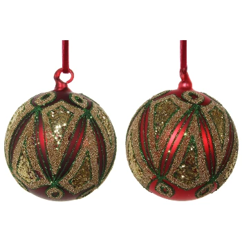 10cm Mix2 Mat Red Glass Ball with Gold Glitter by Shishi.