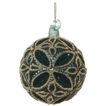 8cm Blue Gold Glass Flower Ball by Shishi.