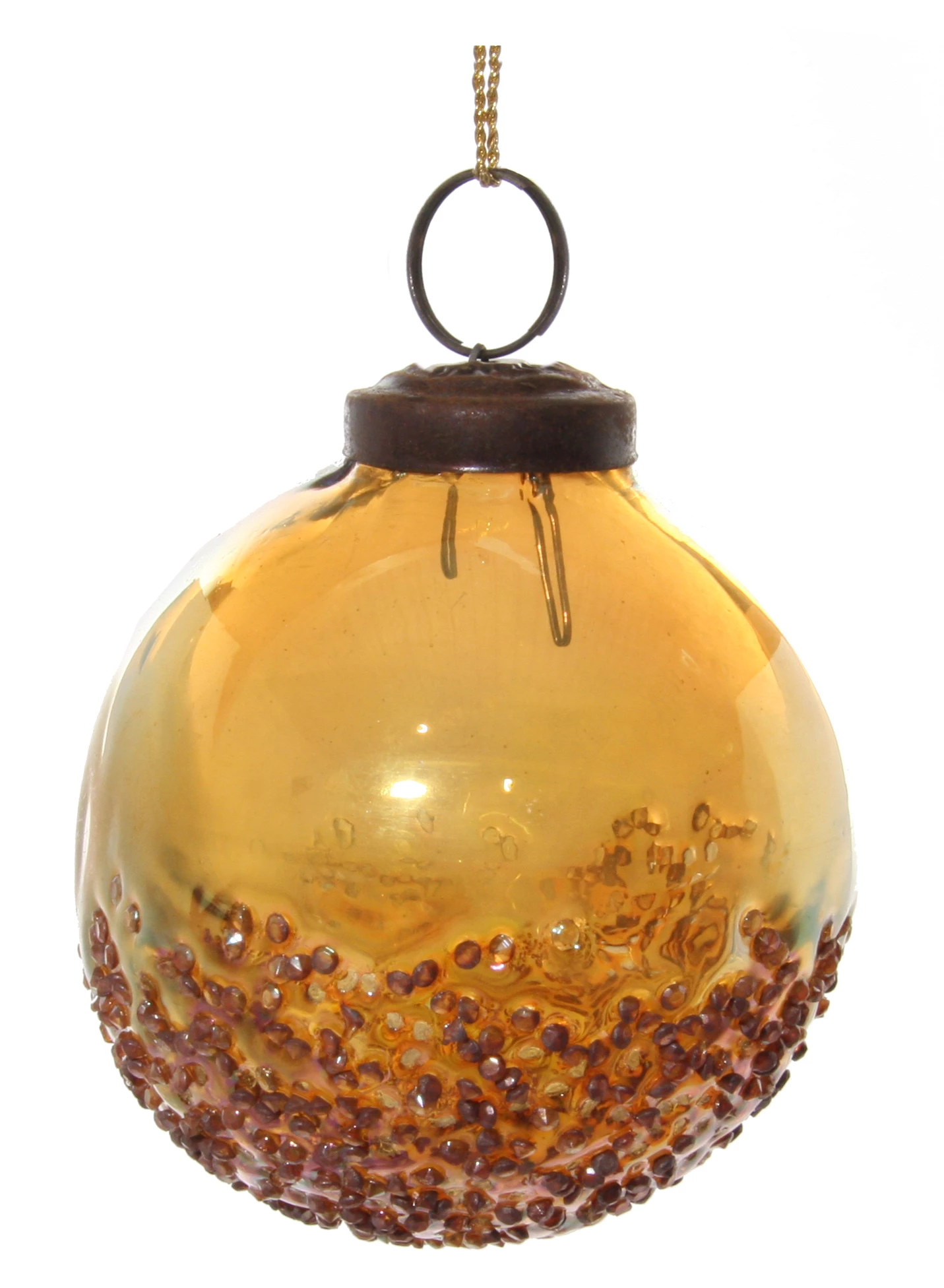 Bola de cristal dorado lustroso con la parte inferior decorada con abalorios.