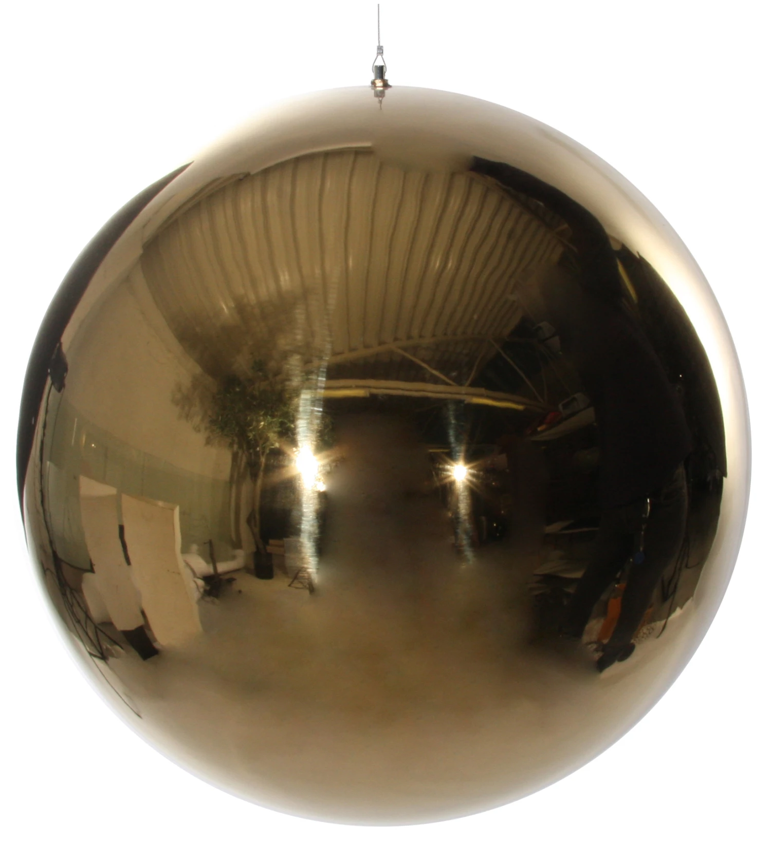 Bola de acero dorado lustroso con efecto espejo.
