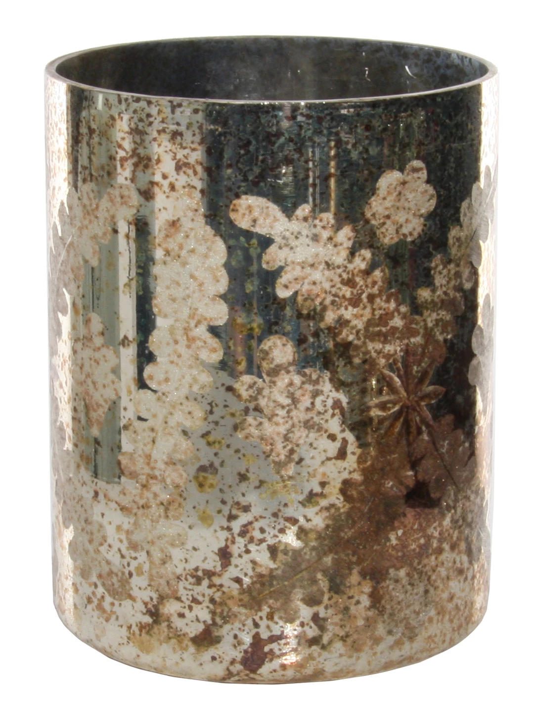 Jarrón de cristal estilo vintage dorado.