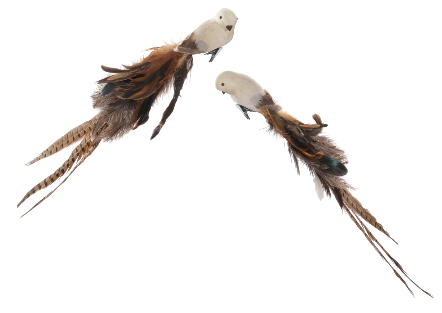Pájaro de terciopelo crema con plumas marrones en la cola.