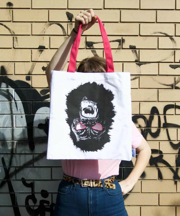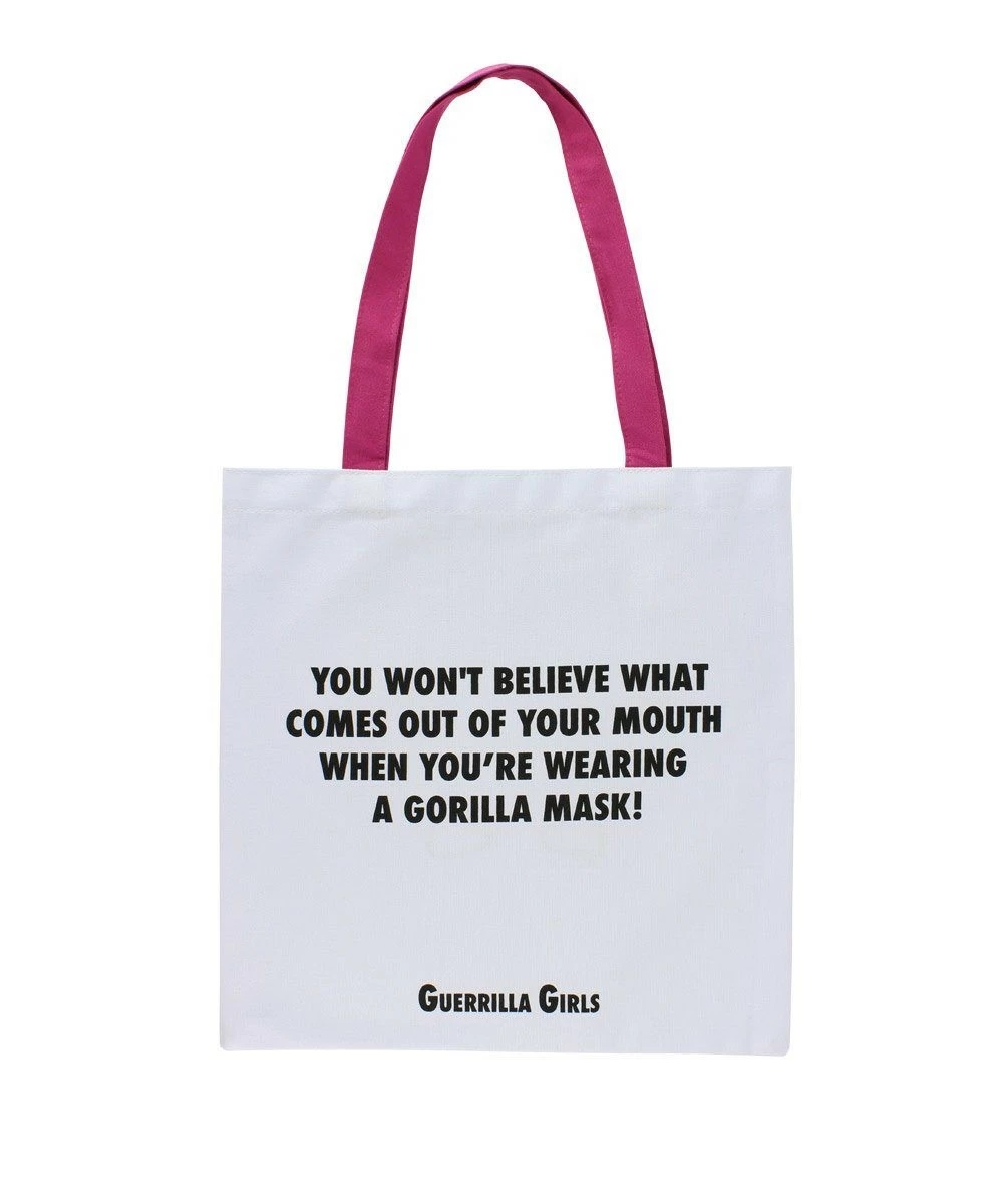 Third Drawer Down Studio in collaboration with the Guerrilla Girls present the Gorilla Mask Tote Bag, that with embroidered cut-out eyes yes, does double as a gorilla mask for Crusaders on the run!