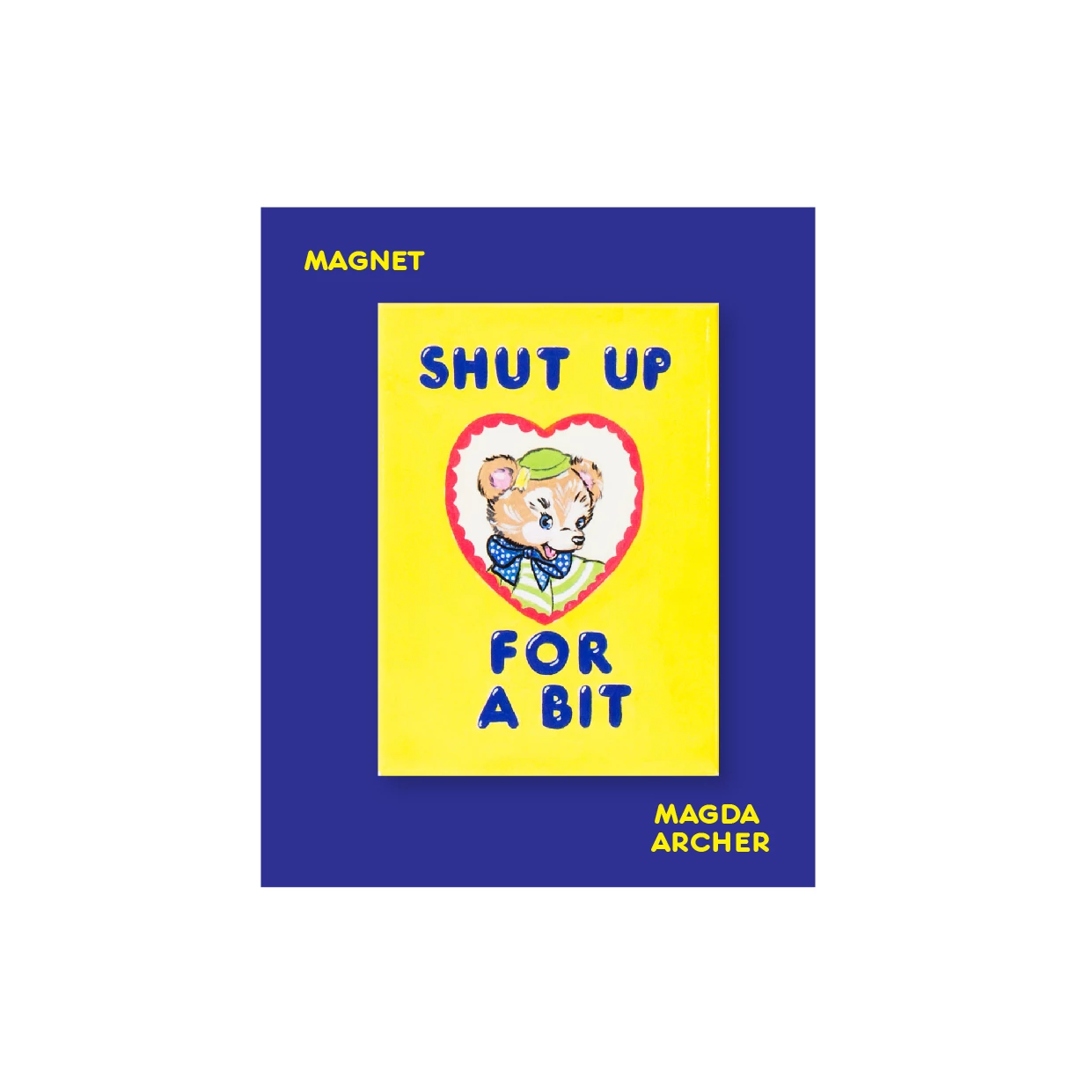 Artist Madga Archer has produced a magnet with a cute bear that asks for a bit of calm. In fact, the hat that wears a bear asks everyone to be quiet for a moment. This is not an unfair request in the world of noise, chaos and drama.